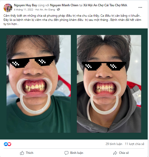 Theo Dr. Huy Bay, đây là trường hợp may mắn khi hiểu được vấn đề nghiêm trọng của răng miệng và đến khám kịp thời, nếu không chỉ một thời gian ngắn, bệnh sẽ tiến chuyển qua giai đoạn nặng hơn và có nguy cơ phải phẫu thuật.