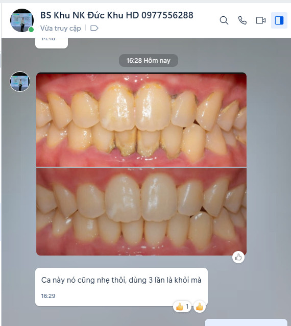 Sau khi kiểm tra tình trạng răng của bệnh nhân, bác sĩ đã tiến hành lấy cao răng, làm sạch mảng bám trên bề mặt răng và các kẽ răng, sau đó dùng Bộ cân bằng vi khuẩn Lusmile đánh răng cho bệnh nhân để điều trị viêm lợi. Chỉ sau 3 lần qua nha khoa để chải răng bằng Lusmile, hiện bệnh viêm lợi của bệnh nhân V đã khỏi hoàn toàn.