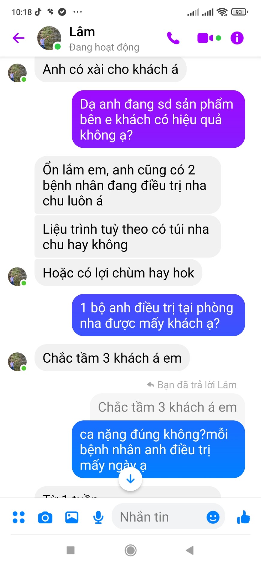 BS. Lâm Trương15:53 - 27/06/2023Khách hàng nói về chúng tôi, Đã sử dụng cho 2 khách, mỗi khách thời gian điều trị từ 1-2 tuần đã thấy hiệu quả rõ rệt.Chia sẻ: