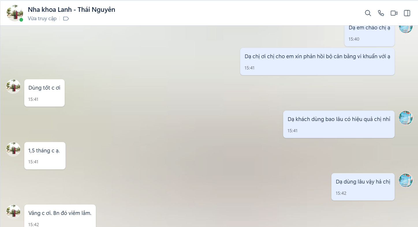 BS. Lục Thị Lanh15:30 - 13/07/2023Khách hàng nói về chúng tôi, Sản phẩm sử dụng tốt, bệnh nhân vị viêm nặng, điều trị trong 1,5 tháng là khỏi.Chia sẻ: