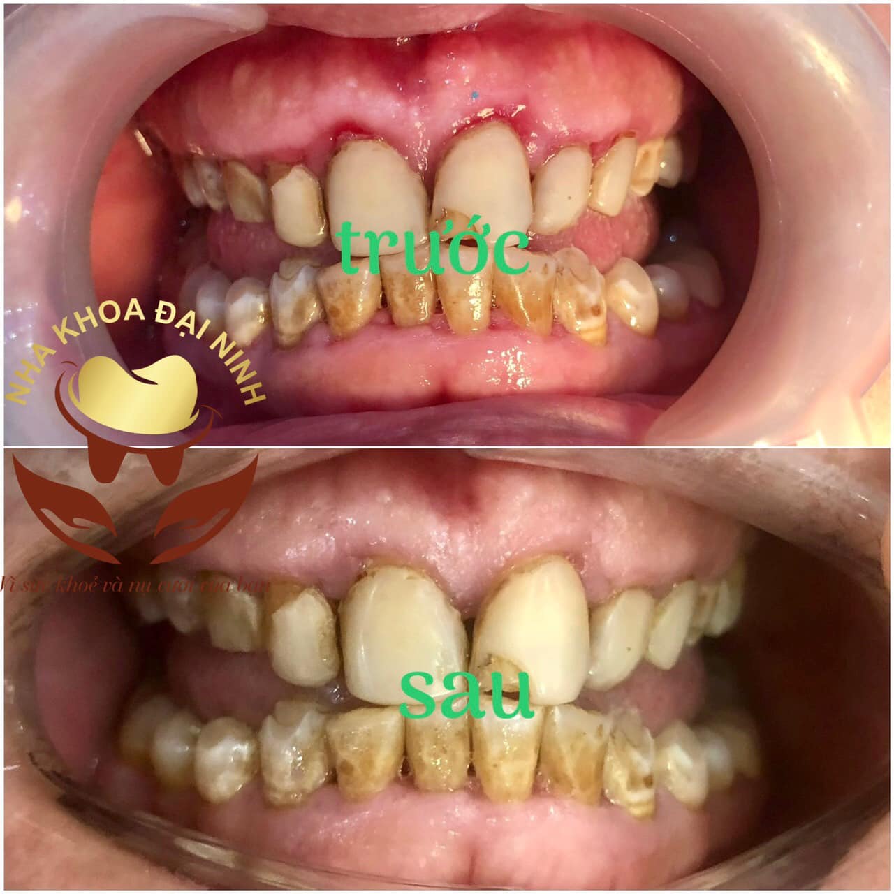 Sau 7 ngày tự điều trị viêm chảy máu chân răng tại nhà, anh Quang quay trở lại nha khoa để tái khám, hiện tại phần lợi răng của anh Quang đã chuyển từ màu đỏ đậm sang hồng nhạt, viêm lợi đã được chữa khỏi.
