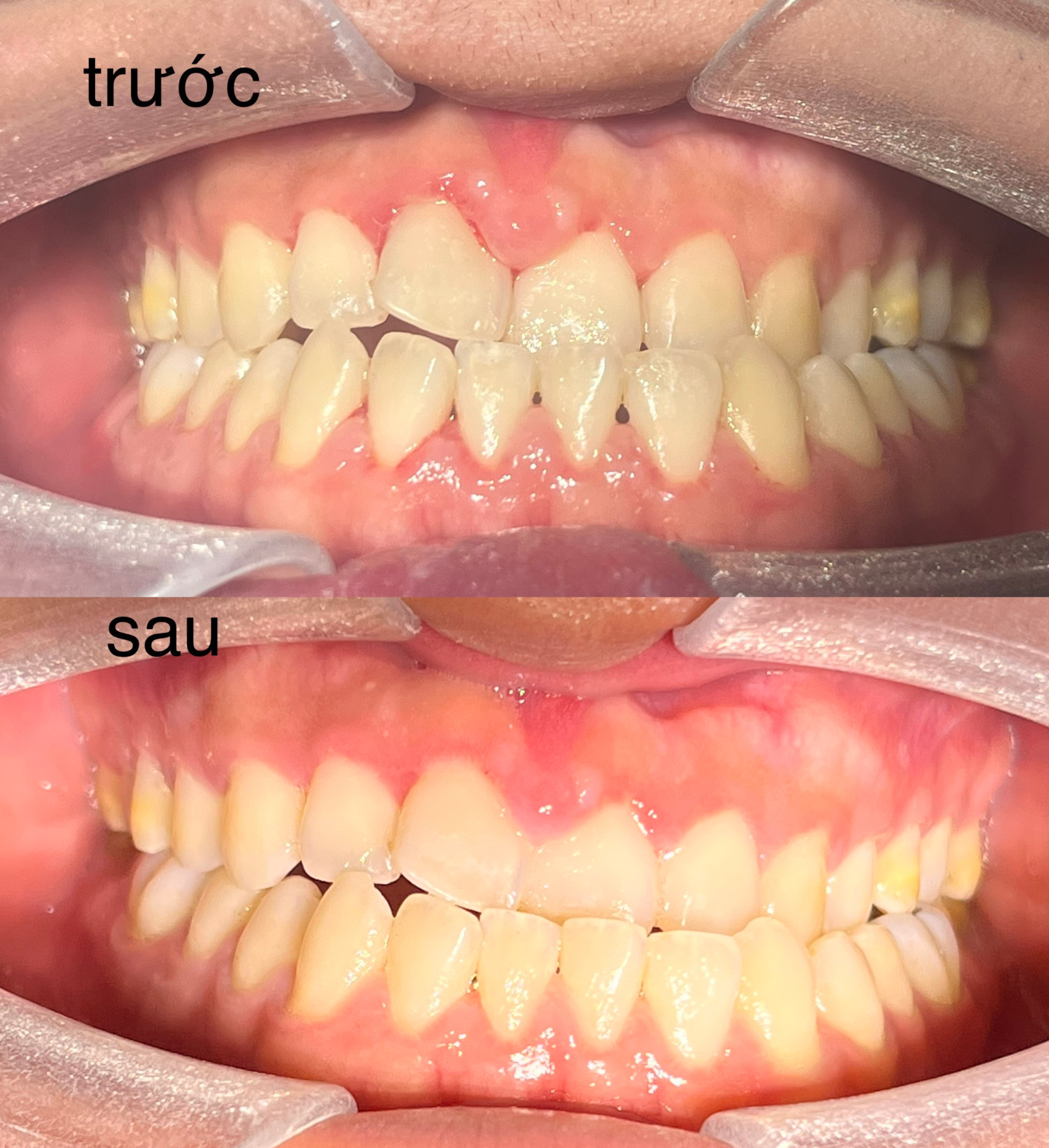 Đối với trường hợp này, bác sĩ cho biết bệnh nhân đang gặp phải tình trạng bị mất cân bằng vi khuẩn trong khoang miệng. Để xử lý tình trạng này, bác sĩ đã tiến hành vệ sinh sạch khoang miệng cho bệnh nhân, sau đó sử dụng Bộ cân bằng vi khuẩn Lusmile để đánh vào các vùng bị viêm lợi. Chỉ sau 10 ngày qua trực tiếp nha khoa điều trị bằng Lusmile, hiện lợi của bệnh nhân đã hồi phục trở lại, không còn sưng đỏ và hết tình trạng chảy máu chân răng.
