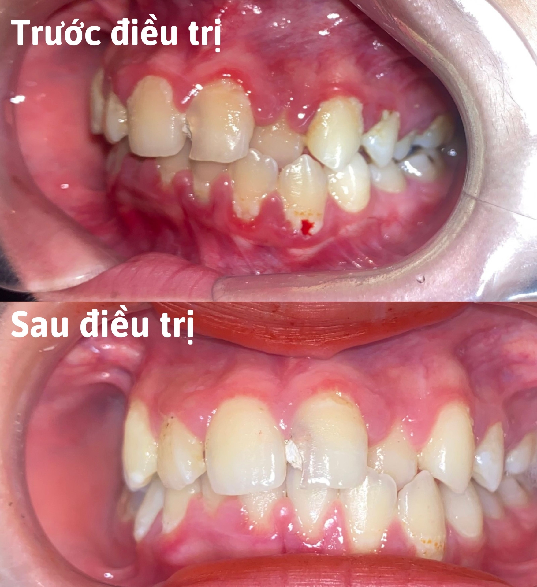 Bệnh nhân đến kiểm tra răng miệng trong tình trạng răng có nhiều cao răng do vệ sinh chưa sạch sẽ, phần đợi bị phì đại nhẹ, đánh răng bị chảy máu chân răng do viêm lợi, rất khó chịu.