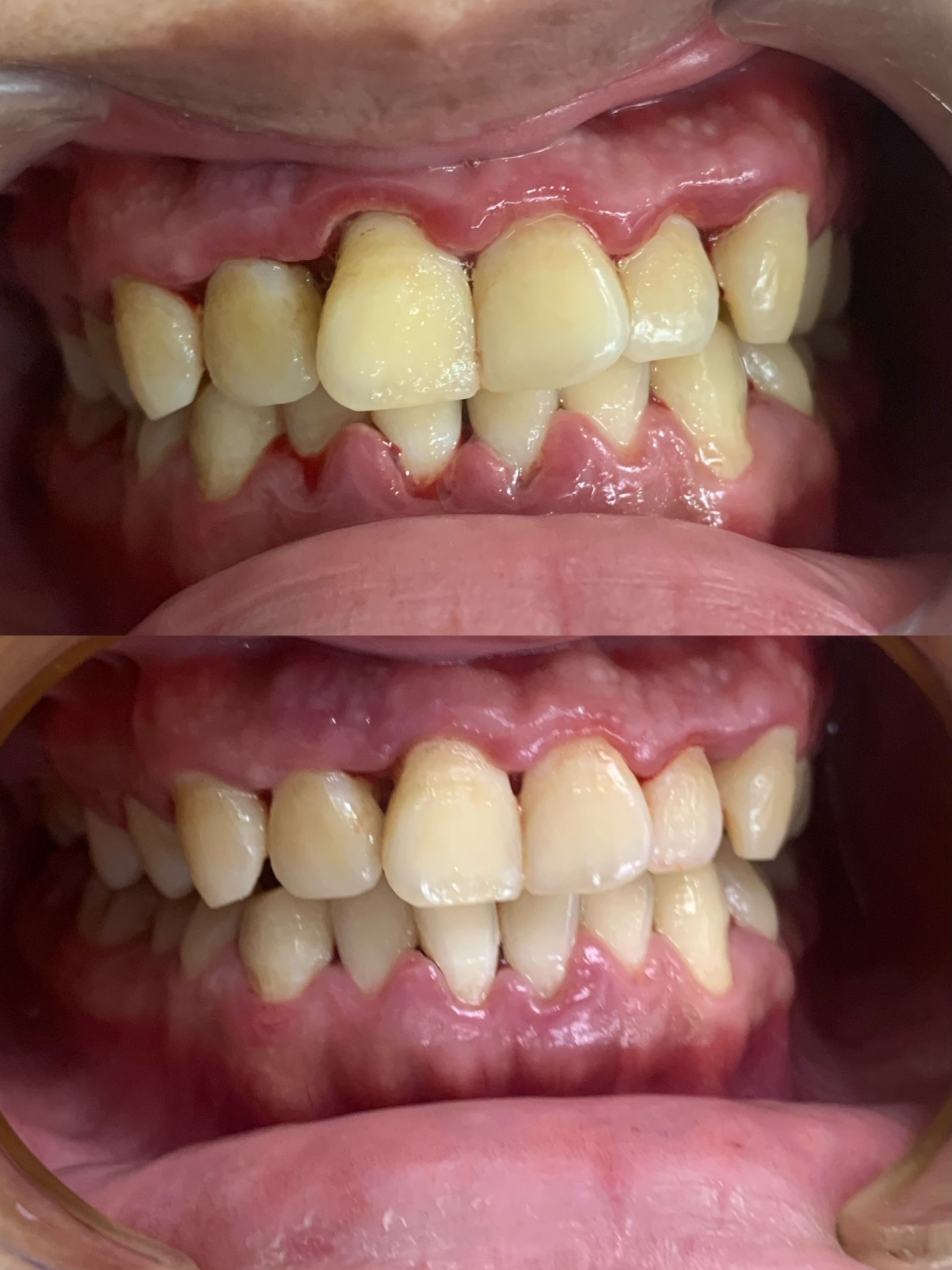 Bệnh nhân T đến phòng khám nha khoa trong tình trạng răng bị viêm lợi khá nặng, phần lợi sưng đỏ và rất dễ bị chảy máu chân răng. Ngoài ra, do viêm lợi nên bệnh nhân gặp phải tình trạng hơi thở có mùi hôi khó chịu, khiến việc giao tiếp trở nên hạn chế, khó khăn.