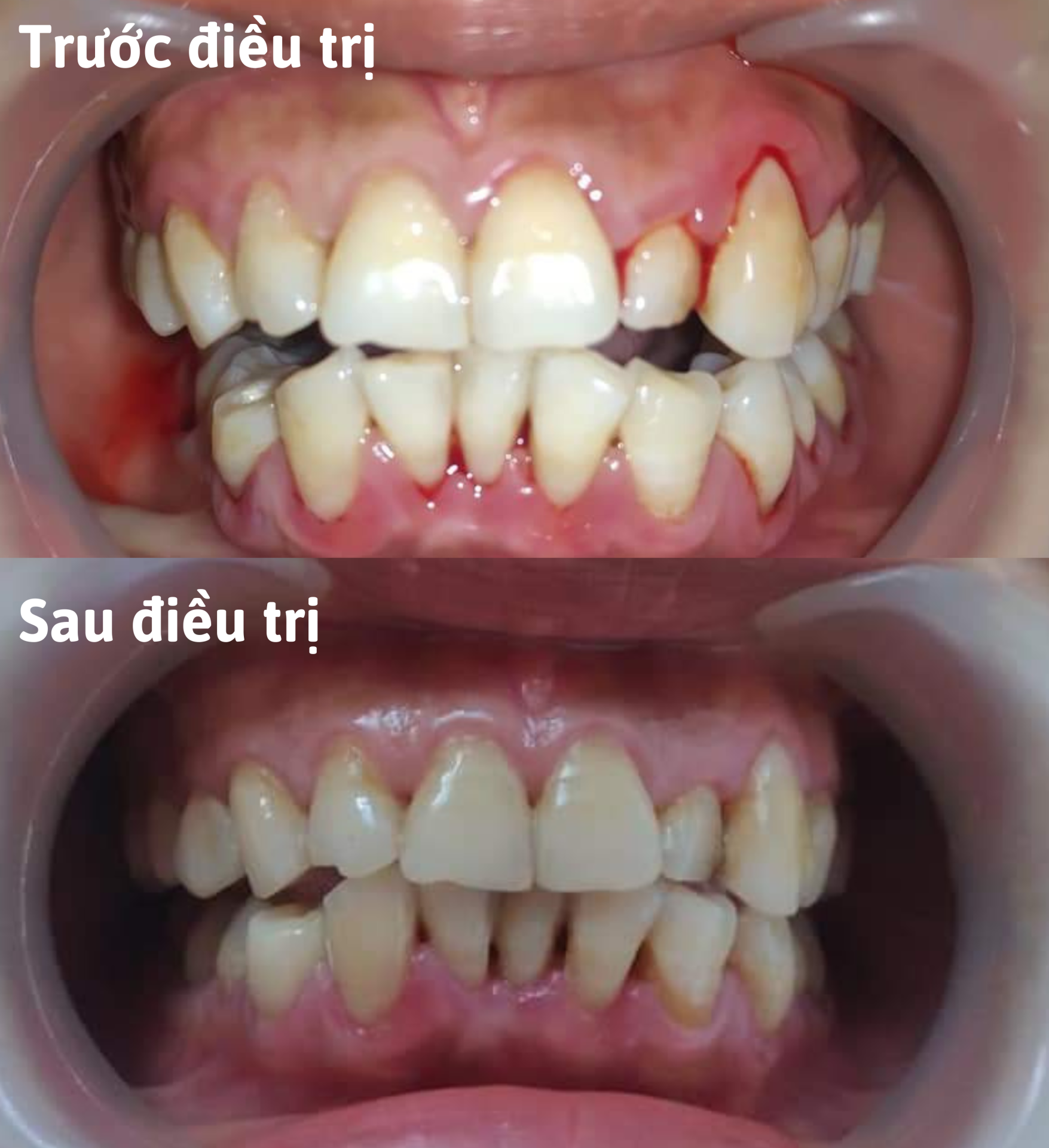 Đối với trường hợp này, bác sĩ đã tiến hành vệ sinh sạch sẽ khoang miệng, lấy cao răng mảng bám và bơm rửa túi lợi bị sưng sạch sẽ, sau đó chải răng bằng kem đánh cân bằng vi khuẩn Lusmile để tiêu diệt triệt để các vi khuẩn gây hại nằm sâu trong các túi lợi. Sau 5 ngày điều trị bằng Bộ cân bằng vi khuẩn tại phòng khám, tình trạng viêm đã cải thiện rõ rệt, bác sĩ tiếp tục đưa sản phẩm Lusmile cho bệnh nhân về tự đánh hàng ngày để phòng tránh tối đa việc tái đi tái lại viêm lợi nhiều lần.