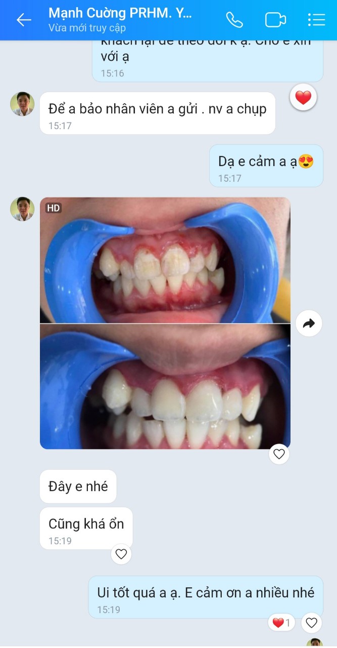 Sau khi vệ sinh sạch sẽ toàn bộ khoang miệng, bác sĩ tiến hành chải răng cho anh Tâm bằng bộ cân bằng vi khuẩn Lusmile TP. Qua lần đánh đầu tiên này, anh Tâm cho biết lợi của anh có vẻ se lại, răng lợi được vệ sinh rất sạch sẽ. Sau 1 tuần đến điều trị liên tục tại nha khoa RHM Yên Bái, hiện tại răng của anh Tâm đã hồi phục hoàn toàn, lợi đã hết sưng đỏ và răng cũng sáng trắng hơn trước đó rất nhiều.