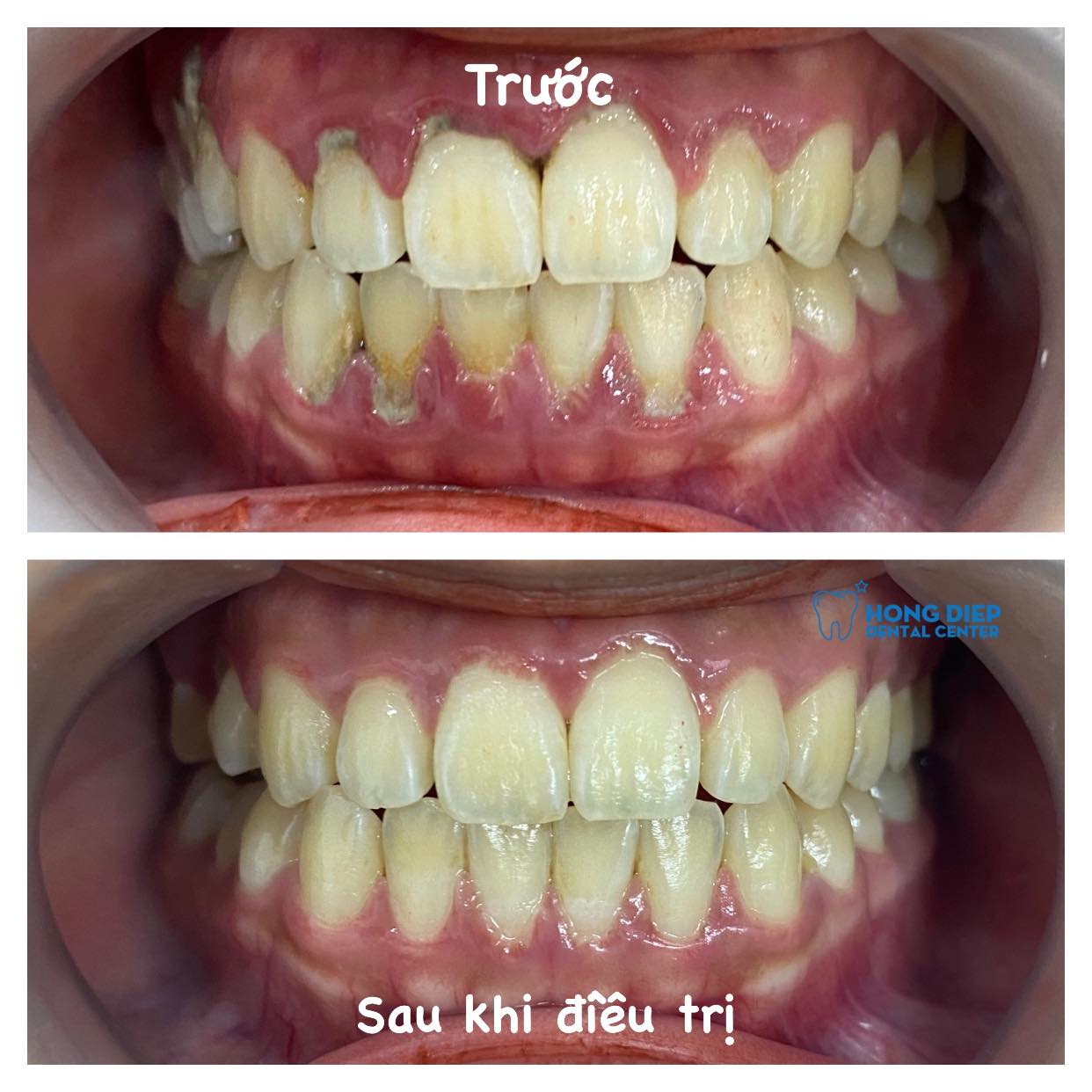 Chỉ sau 2 lần điều trị, bệnh nhân đã khỏi viêm lợi hoàn toàn, hàm răng trắng bóng và phần nướu hồng hào khỏe mạnh hơn bao giờ hết.