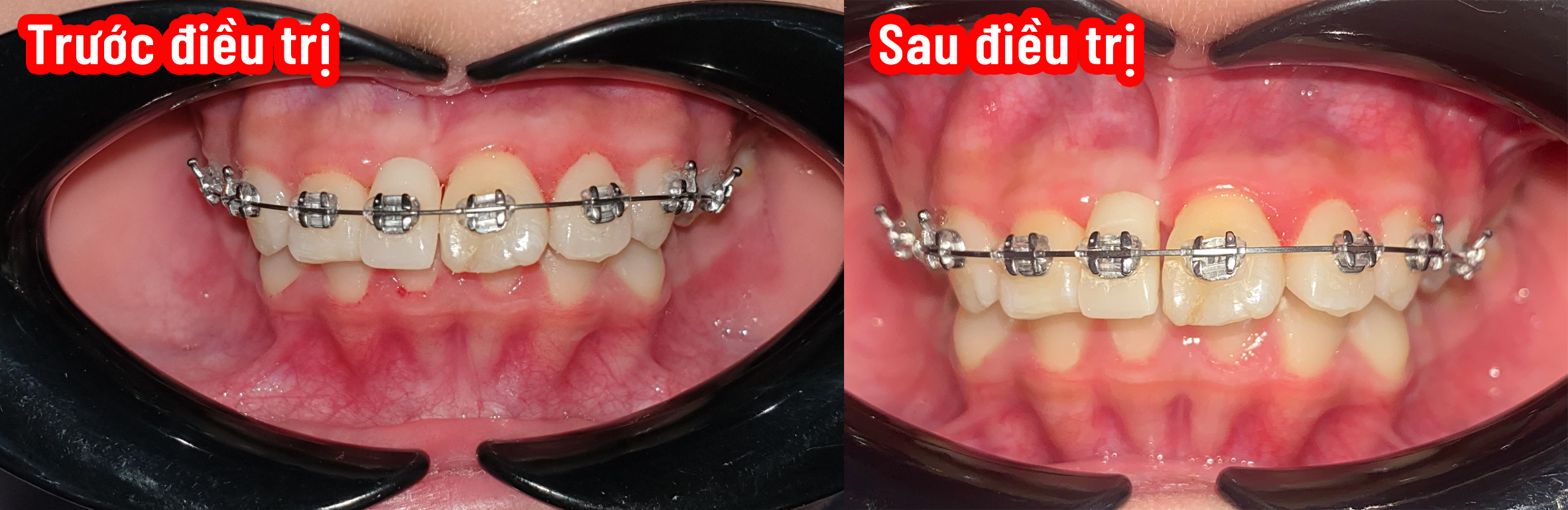 Lần thăm khám gần nhất, bác sĩ vệ sinh, thay dây mắc cài cho chị Hoa thì có phát hiện chị đang bị viêm nhẹ, phần chân răng có chảy máu nhẹ do thời gian gần đây chị vệ sinh răng qua loa không đúng cách, đây cũng là vấn đề rất nhiều người chỉnh nha đang gặp phải.