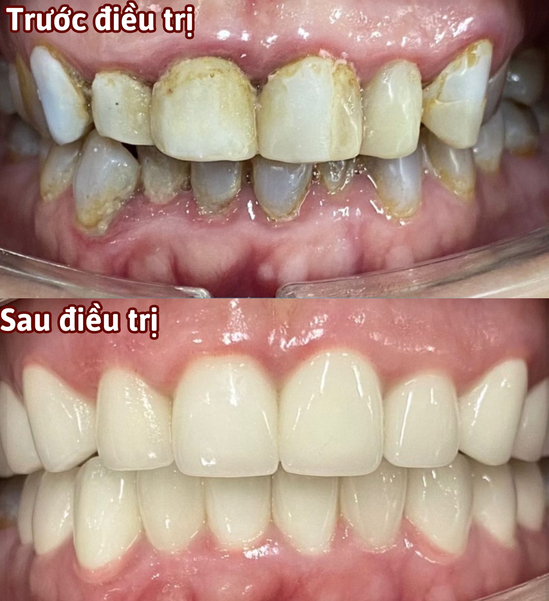 Kết quả rất tích cực. Lợi phục hồi tốt, không còn chảy máu khi đánh răng. Mô lợi bám chắc hơn, tình trạng viêm được kiểm soát. Bệnh nhân cảm thấy tự tin hơn trong giao tiếp và sinh hoạt.